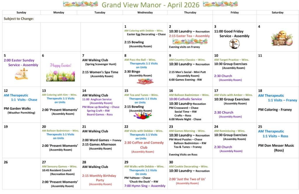 Over 250 people kind and skilled professionals are employed by Grand View Manor to provide loving care within a close-knit community. Over the years, tremendous changes have provided our staff team and our many volunteers with both opportunities and challenges.